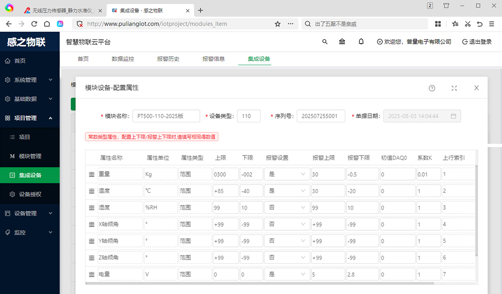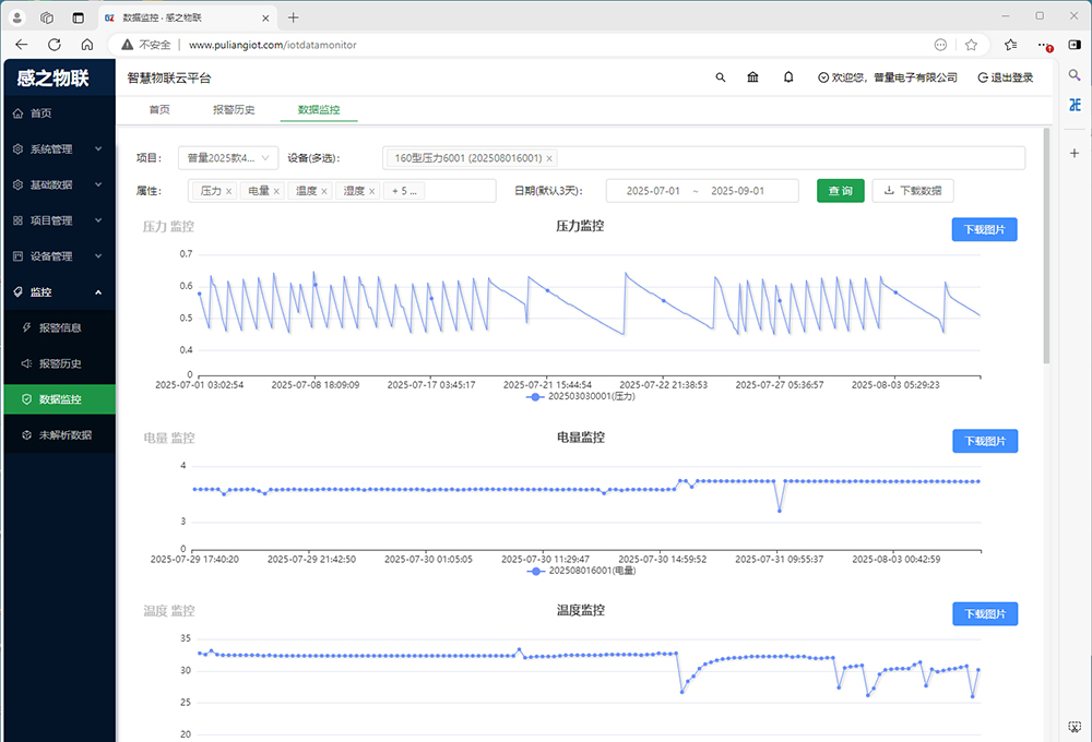 五、消防栓消防管网供气供暖物联压力传感器 PT500-160 感之物联监控平台: